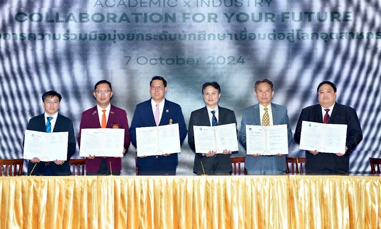 นายนันทวัฒน์ ศรีวรัตน์อัชกุล ผู้ช่วยกรรมการผู้จัดการใหญ่ บริษัท โตโยต้า มอเตอร์ ประเทศไทย จำกัด พร้อมด้วย ผศ.ดร. สุรัฐ ขวัญเมือง รองคณบดีคณะวิศวกรรมศาสตร์ จุฬาลงกรณ์มหาวิทยาลัย, รศ.ดร.สมยศ เกียรติวนิชวิไล คณบดีคณะวิศวกรรมศาสตร์ สถาบันเทคโนโลยีพระจอมเกล้าเจ้าคุณทหารลาดกระบัง, ผศ.ดร. ชัยวัฒน์ เอกวัฒน์พานิชย์รองคณบดีฝ่ายอุตสาหกรรมสัมพันธ์และกิจการพิเศษ คณะวิศวกรรมศาสตร์ มหาวิทยาลัยเทคโนโลยีพระจอมเกล้าธนบุรี, ผศ.ดร.ศุภฤกษ์ สุขสมาน รองคณบดีคณะบริหารธุรกิจ มหาวิทยาลัยเกษตรศาสตร์, และ ผศ.ดร.ศุภชัย ศรีสุชาติ รักษาการแทนในตำแหน่งคณบดีคณะเศรษฐศาสตร์มหาวิทยาลัยธรรมศาสตร์ ร่วมลงนามในบันทึกข้อตกลงความร่วมมือเพื่อมุ่งยกระดับนักศึกษาเชื่อมต่อสู่โลกอุตสาหกรรม ณ โรงงานโตโยต้า บ้านโพธิ์ จ. ฉะเชิงเทรา เมื่อวันที่ 7 ตุลาคม 2567 ที่ผ่าน