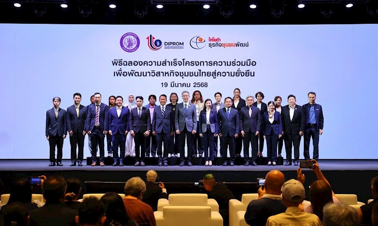 ดร.ณัฐพล รังสิตพล ปลัดกระทรวงอุตสาหกรรม นางสาวณัฏฐิญา เนตยสุภา อธิบดีกรมส่งเสริมอุตสาหกรรม นายสุรภูมิ อุดมวงศ์ รองกรรมการผู้จัดการใหญ่ บริษัท โตโยต้า มอเตอร์ ประเทศไทย จำกัด พร้อมด้วยคณะเจ้าหน้าที่จากกรมส่งเสริมอุตสาหกรรม และคณะผู้บริหารระดับสูง บริษัท โตโยต้า มอเตอร์ ประเทศไทย จำกัด ร่วมเป็นเกียรติภายในงานฉลองความสำเร็จ โครงการความร่วมมือเพื่อพัฒนาวิสาหกิจชุมชนไทยสู่ความยั่งยืน เมื่อวันพุธที่ 19 มีนาคม 2568 ที่ผ่านมา ณ Toyota ALIVE บางนา