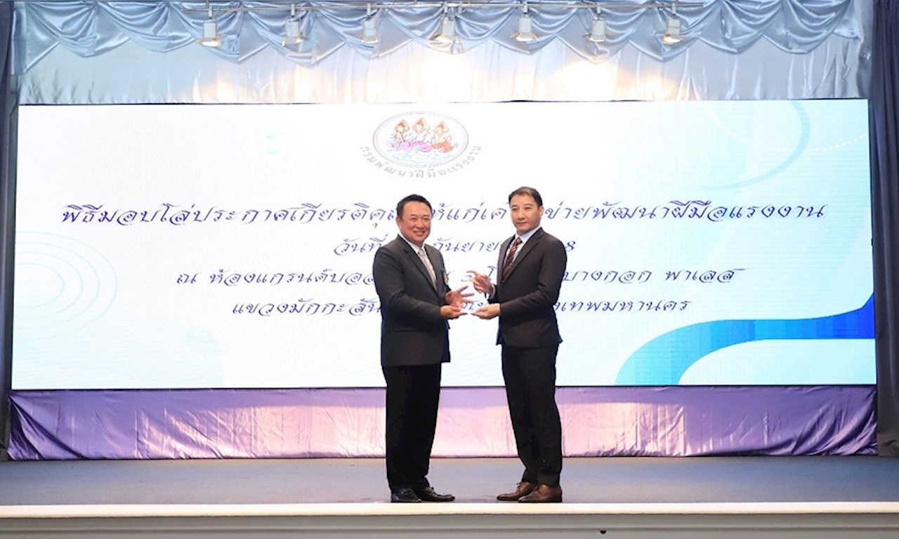 บริษัท โตโยต้า มอเตอร์ ประเทศไทย จำกัด รับมอบโล่ประกาศเกียรติคุณเครือข่ายพัฒนาฝีมือแรงงาน จาก นายเดชา พฤกษ์พัฒนรักษ์ อธิบดีกรมพัฒนาฝีมือแรงงาน เมื่อวันที่ 20 กันยายน 2568 ณ ห้องแกรนด์บอลรูม ชั้น 3 โรงแรมบางกอก พาเลส กรุงเทพมหานคร