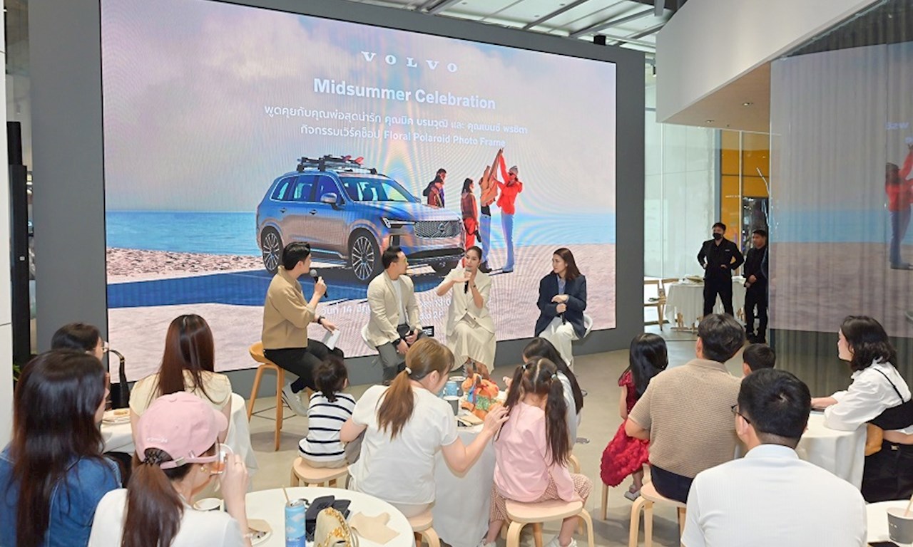 วอลโว่ คาร์ ประเทศไทย นำโดย คุณนิชานันท์ ปัญญา ผู้อำนวยการฝ่ายการตลาด ร่วมฉลองวันกลางฤดูร้อนแสนอบอุ่นหรือ มิดซัมเมอร์ (Midsommar ในภาษาสวีดิช / Midsummer ในภาษาอังกฤษ) ของประเทศสวีเดน ชวนลูกค้าวอลโว่ และผู้สนใจ ร่วมพูดคุยกับครอบครัวผู้ใช้งานวอลโว่ตัวจริง คุณมิค บรมวุฒิ, คุณเบนซ์ พรชิตา และครอบครัว พร้อมทำกิจกรรมเวิร์กชอปจัดดอกไม้ประดับกรอบรูป และสัมผัสกับรถสไตล์ SUV สำหรับครอบครัวขนาด 6 และ 7 ที่นั่ง รุ่นใหม่ล่าสุดจากวอลโว่ อย่าง Volvo EX90 และ XC90 ที่ วอลโว่ สตูดิโอ เอ็มสเฟียร์