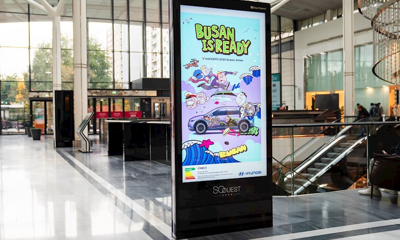 ฮุนได มอเตอร์ กรุ๊ป จะเผยแพร่โฆษณาผ่านจอดิจิตอล ที่ตั้งอยู่ในย่านที่มีการจราจรหนาแน่นของปารีส เช่น Terne district, Gare Saint-Lazare และ La Défense เพื่อสนับสนุนให้ปูซานได้รับการคัดเลือก