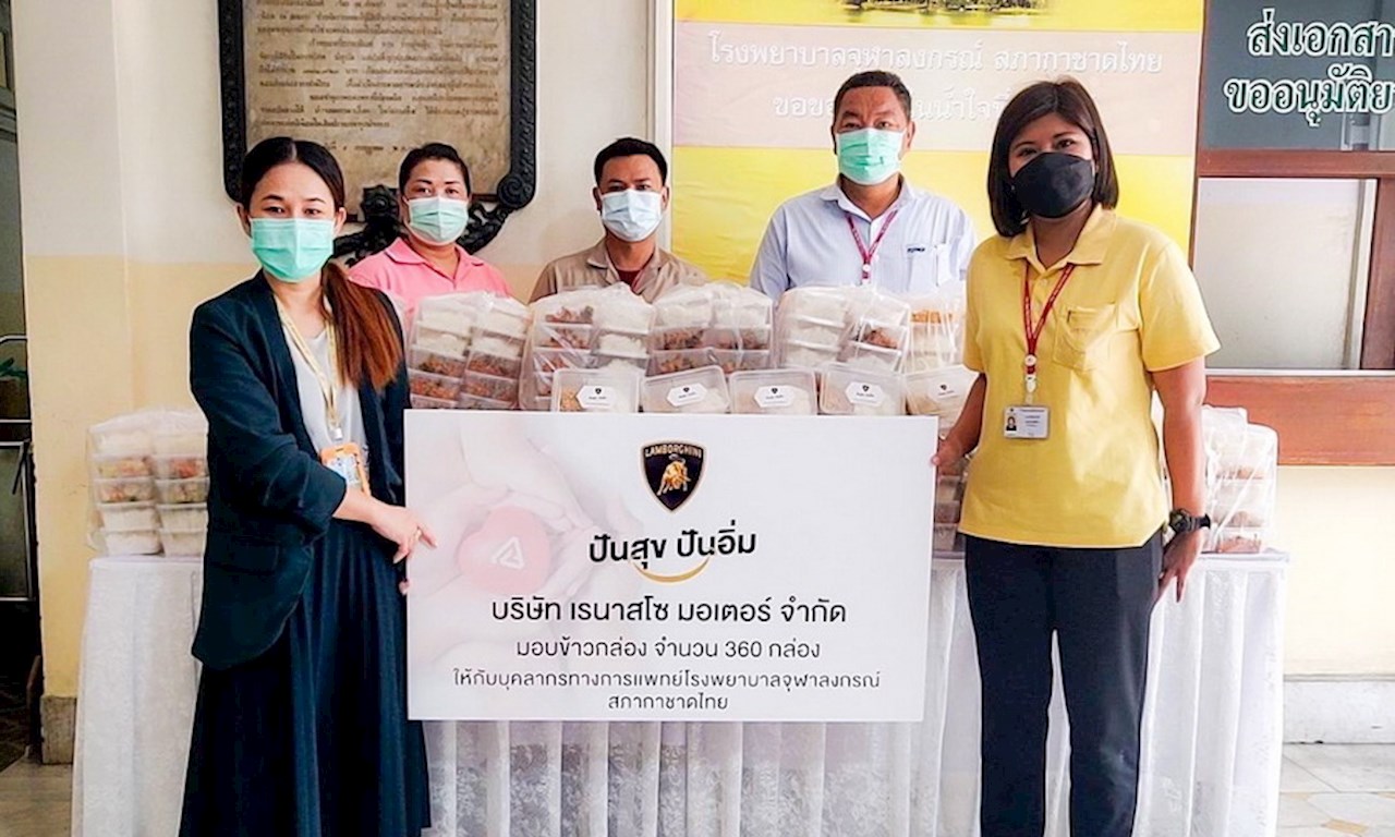 บริษัท เรนาสโซ มอเตอร์ จำกัด ตัวแทนจำหน่ายรถยนต์ลัมโบร์กินีอย่างเป็นทางการรายเดียวในประเทศไทย ตอกย้ำเจตนารมณ์ในการร่วมเป็นส่วนหนึ่งของสังคม ผุดโปรเจค "ปันสุข ปันอิ่ม" เพื่อสนับสนุนผู้ประกอบการร้านอาหารขนาดเล็กที่ได้รับผลกระทบจากสถานการณ์การระบาดของโควิด-19 ตลอดจนบรรเทาความเดือดร้อนให้แก่ผู้ติดเชื้อที่กักตัวในชุมชนในพื้นที่กรุงเทพมหานคร โดยส่งมอบอาหารกล่องที่ปรุงสดใหม่เป็นที่เรียบร้อยแล้วรวม 1,500 กล่อง ตลอดเดือนกันยายนที่ผ่านมา อาทิ ชุมชนสามัคคีร่วมใจ บางเขน, โรงพยาบาลรามาธิบดี มหาวิทยาลัยมหิดล, ชุมชนชายคลองเสนานิคม เขตจตุจักร, โรงพยาบาลจุฬาลงกรณ์ สภากาชาดไทย, ศูนย์สร้างสุขทุกวัย เขตจตุจักร