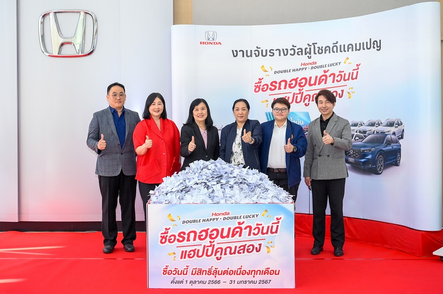 บริษัท ฮอนด้า ออโตโมบิล (ประเทศไทย) จำกัด ได้ทำการจับรางวัลผู้โชคดีจากแคมเปญ “Honda Double Happy, Double Lucky ซื้อรถฮอนด้าวันนี้ แฮปปี้คูณสอง” เป็นครั้งที่ 3 เมื่อวันที่ 18 มกราคม 2567 พร้อมเชิญชวนลูกค้าซื้อและรับรถยนต์ฮอนด้า ภายในวันที่ 31 มกราคม 2567 เพื่อร่วมเป็นผู้โชคดีในการจับรางวัลโค้งสุดท้ายของแคมเปญ โดยลูกค้าจะได้รับ 1 สิทธิ์ต่อการซื้อรถยนต์ 1 คัน เพื่อลุ้นรับรางวัล 2 ต่อ โดยต่อที่ 1 ลุ้นรับบัตรน้ำมันมูลค่า 20,000 บาท หรือ 10,000 บาท โดยมีจำนวนเพิ่มขึ้นในทุกเดือน รวม 3,000 รางวัล หากลูกค้ายังไม่ได้รับโชคในครั้งแรก ลูกค้าจะสามารถลุ้นได้ใหม่ทุกเดือนตลอดแคมเปญ และต่อที่ 2 ลูกค้าทุกคนมีสิทธิ์ลุ้นรางวัลใหญ่ รวม 30 รางวัล ได้แก่ รถยนต์ฮอนด้าเอสยูวี 4 รุ่น จำนวน 10 คัน และรถจักรยานยนต์ ฮอนด้า จีออโน่ พลัส (GIORNO+) รุ่น ABS จำนวน 20 คัน รวมรางวัลทั้งสิ้น 3,030 รางวัล มูลค่ากว่า 52 ล้านบาท