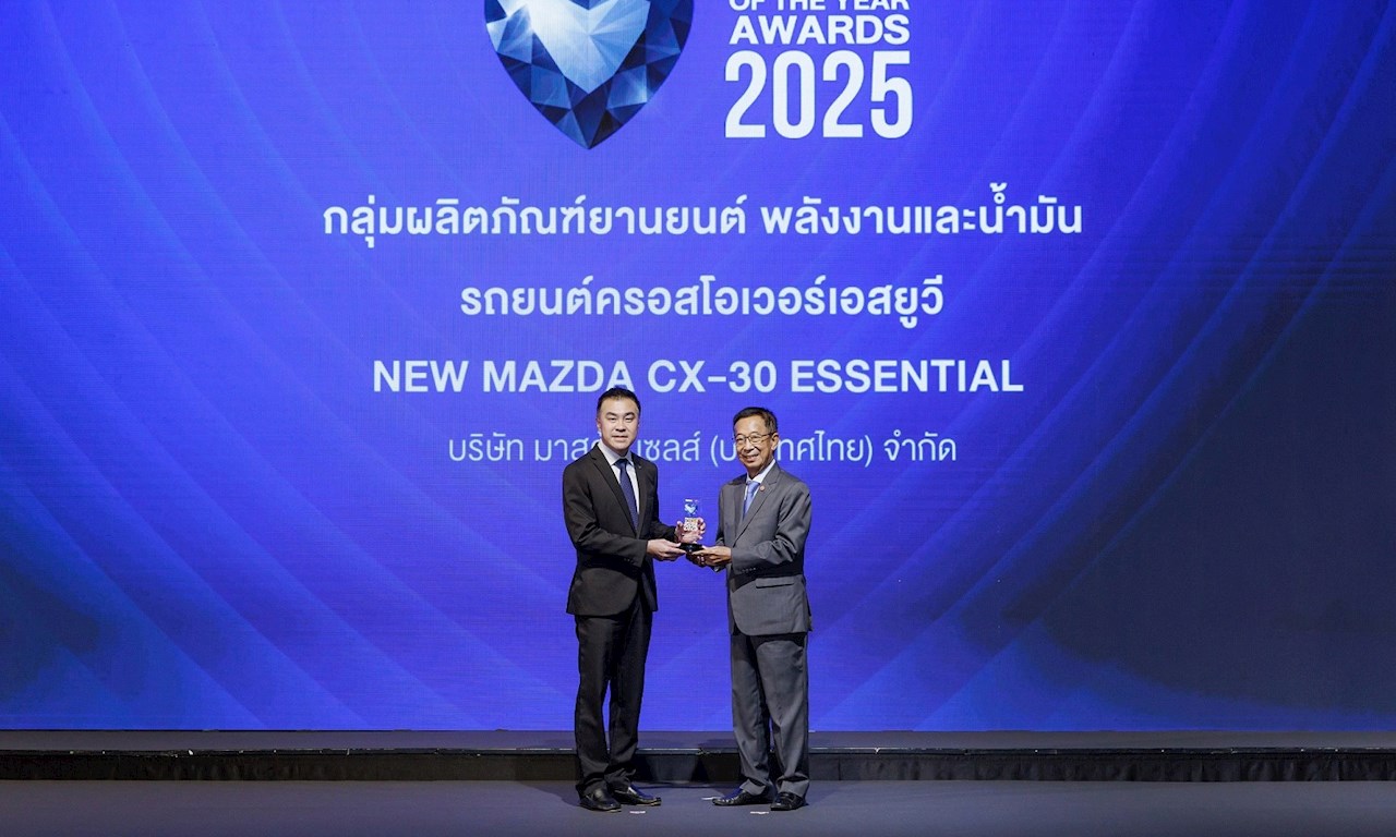 ครอสโอเวอร์เอสยูวีระดับพรีเมี่ยม New Mazda CX-30 Essential คว้ารางวัล Product of the Year Awards 2025 หรือรางวัลสุดยอดสินค้าและบริการแห่งปี จากนิตยสาร Business+ ที่จัดขึ้นเพื่อคัดเลือกสุดยอดสินค้าและบริการแห่งปี ที่ตอบสนองความต้องการของลูกค้า มีความโดดเด่น และสร้างความพึงพอใจให้กับลูกค้า ตอกย้ำถึงแนวทางของบริษัทฯ ต่อการมุ่งมั่นพัฒนานวัตกรรมและเทคโนโลยียานยนต์อันล้ำสมัย ตอบสนองความต้องการของลูกค้าที่มีไลฟ์สไตล์หลากหลาย และส่งมอบประสบการณ์ความสุขในการขับขี่ให้กับลูกค้าได้เป็นอย่างดี โดยพิธีมอบรางวัลครั้งนี้ ได้รับเกียรติจาก ฯพณฯ นุรักษ์ มาประณีต องคมนตรี เป็นประธานมอบรางวัล โดยมี นายภพนิพิฐ จิรวัฒนานนท์ ผู้อำนวยการ ฝ่ายการตลาดและนวัตกรรมดิจิทัล บริษัท มาสด้า เซลส์ (ประเทศไทย) จำกัด เป็นตัวแทนรับมอบฯ ณ ห้องบอลรูม โรงแรมสวิสโฮเต็ล รัชดา กรุงเทพฯ