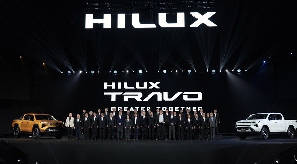 มร.ไซม่อน ฮัมฟรีส์ ประธานเจ้าหน้าที่บริหารด้านแบรนด์ บริษัท โตโยต้า มอเตอร์ คอร์ปอเรชัน ประเทศญี่ปุ่น / มร.นิค โฮจิออส ผู้จัดการอาวุโส โตโยต้าดีไซน์ ประเทศออสเตรเลีย / ดร.ธนกร วังบุญคงชนะ รัฐมนตรีว่าการกระทรวงอุตสาหกรรม / ดร.ณัฐพล รังสิตพล ปลัดกระทรวงอุตสาหกรรม / นายฐาปกรณ์ กุลเจริญ เลขานุการรัฐมนตรีว่าการกระทรวงอุตสาหกรรม / นางสาวจิรัฐิติกาล จันทราทิพย์ ประจำสำนักเลขาธิการนายกรัฐมนตรี / นายกลินท์ สารสิน ประธานคณะกรรมการ และ มร.โนริอากิ ยามาชิตะ กรรมการผู้จัดการใหญ่ พร้อมกับ นายศุภกร รัตนวราหะ รองกรรมการผู้จัดการใหญ่ บริษัท โตโยต้า มอเตอร์ ประเทศไทย จำกัด พร้อมด้วย นางสาวอัญญารัตน์ สุทธิเบญจกุล หัวหน้าวิศวกรระดับภูมิภาค บริษัท โตโยต้า มอเตอร์ เอเชีย (ประเทศไทย) จำกัด และ มร.ฮาคุโฮ โช เจ้าของแชมป์กีฬาซูโม่ระดับโยโกสุนะ (Yokozuna) ชื่อดัง ลำดับที่ 69 จากประเทศญี่ปุ่น ร่วมแถลงข่าวเปิดตัวรถกระบะมหาชนรุ่นใหม่ล่าสุด เป็นครั้งแรกของโลกที่ประเทศไทยกับ TOYOTA HILUX TRAVO และ HILUX TRAVO-e เมื่อวันที่ 10 พฤศจิกายน 2568 ณ ศูนย์นิทรรศการและ การประชุมไบเทค