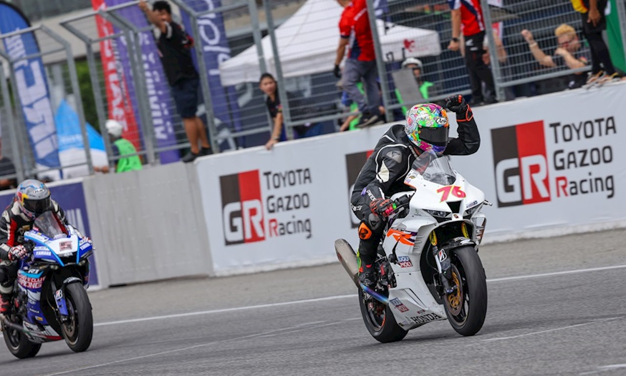 หลังจากได้พัฒนาฝีมือ และสะสมประสบการณ์เพื่อเติมเต็มแพสชันการเป็นนักแข่งไปอีกขั้น ‘ดีเจปอ’ ได้เข้าร่วมสังกัด จิคาระ ลิควิ โมลี เรซซิ่ง ทีม ลงท้าทายในรายการระดับประเทศ ในศึกรถจักรยานยนต์ทางเรียบชิงแชมป์ประเทศไทย ‘แพลน-บี มีเดีย บีอาร์ไอซี ซูเปอร์ไบค์ แชมเปียนชิพ 2024’ โดยสนาม 2 ที่ผ่านมา ‘ดีเจปอ’ สามารถคว้าชัยชนะครั้งแรกในรุ่น ซูเปอร์สต็อก 1,000 ซีซี (ST3) แบบเหนือชั้น ด้วย Honda CBR1000R ณ สนามช้าง อินเตอร์เนชั่นแนล เซอร์กิต จังหวัดบุรีรัมย์