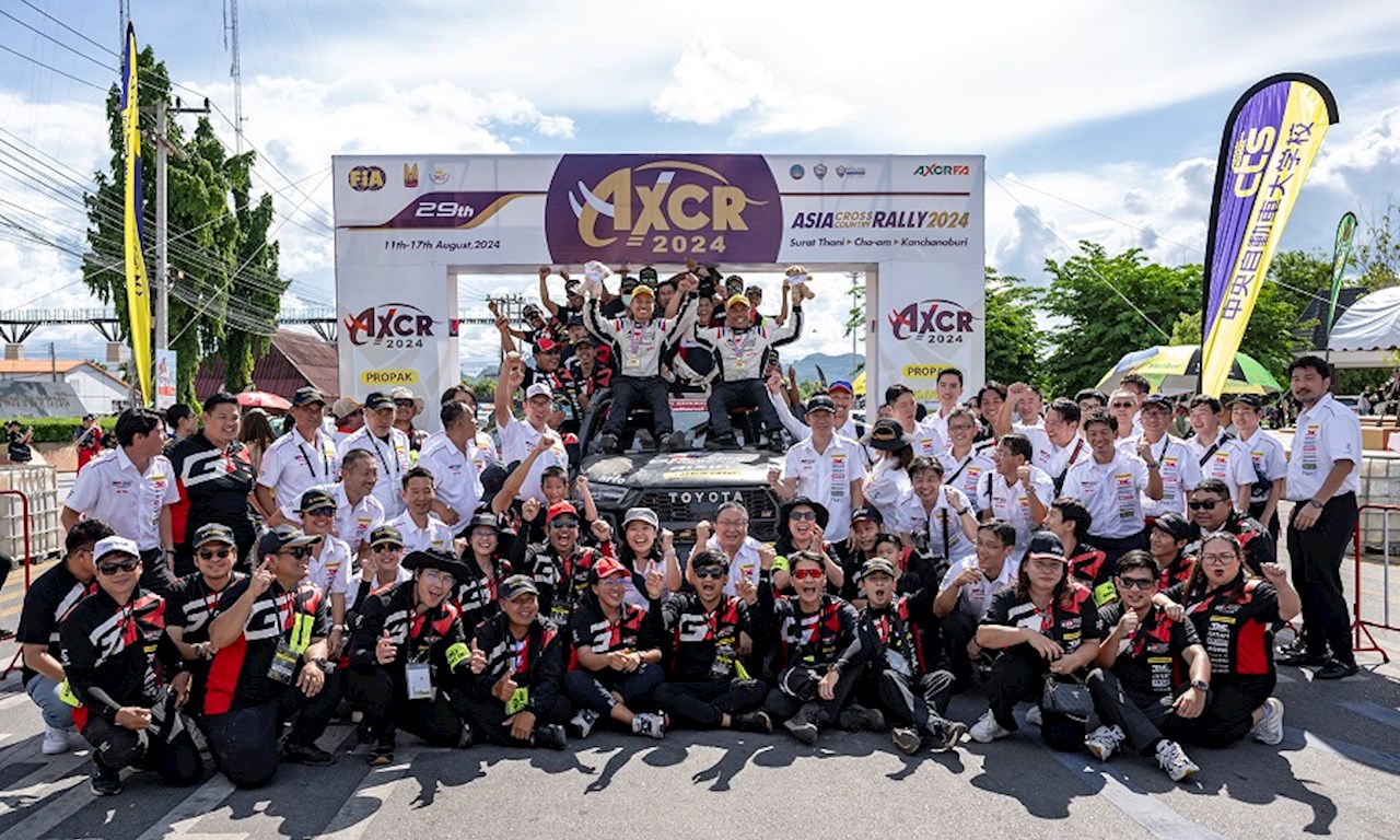 TOYOTA GAZOO Racing Thailand ส่งรถ Hilux REVO GR SPORT Wide Tread 3 คัน ลงการแข่งขัน “Asia Cross Country Rally 2024” เพื่อพิสูจน์สมรรถนะของทั้งรถและคน เพราะในสภาวะกดดันของการแข่งขันจะช่วยเค้นศักยภาพทั้งหมดออกมาเพื่อมุ่งสู่เส้นชัย TOYOTA GAZOO Racing Thailand ร่วมกับวิศวกรชาวไทย (TMA) ในการศึกษาเก็บข้อมูลเพื่อนำไปพัฒนายนตรกรรมที่ดียิ่งกว่าให้กับผู้ใช้รถคนไทยในอนาคต ตามแนวคิด MAKE EVER-BETTER CARS FROM CIRCUIT TO THE ROAD หลังพิธีตีธงเปิดการแข่งขันในวันที่ 11 สิงหาคม ณ หอนาฬิกาใจกลางเมืองจังหวัดสุราษฎร์ธานี เช้าวันที่ 12 สิงหาคม ก็เป็นการสตาร์ทออกตัวของ Leg1 จ.สุราษฎร์ธานี และต่อเนื่องจนถึง Leg6 จ.กาญจนบุรี ต้องผ่านเส้นทางที่ยากลำบาก ทั้งทางที่เป็นหลุมบ่อขนาดใหญ่ เต็มไปด้วยก้อนหินตะปุ่มตะป่ำ ทางแคบขับยาก มีร่องน้ำลึกข้างทาง และมีเงาป่ายางที่ทำให้ทัศนวิสัยลดลง ทั้งนักขับและ Co-Driver ต้องใช้ประสบการณ์ในการสังเกตจุดมาร์คต่างๆ เป็นอย่างดี และมีทางขึ้นลงเขาที่มีฝนตกหนัก ทำให้ค่อนข้างลื่น ขับยาก บางวันเจอกับป่าหิน ร่องน้ำและทางขาด รถทั้ง 3 คัน และทีมงานเบื้องหลังต้องปรับแผนปรับรถสู้เต็มที่ในทุกวัน จบการแข่งขันทั้ง 6 วันไปด้วยชัยชนะยิ่งใหญ่คุ้มค่าการรอคอย เมื่อรถหมายเลข 105 Class T1D ขับโดย มานะ พรศิริเชิด และกิติศักดิ์ กลิ่นจันทร์ (Co-Driver) จบการแข่งขันคว้าแชมป์อันดับ 1 ของรุ่นและแบบโอเวอร์ออล ใช้เวลารวม 14:22 ชม.