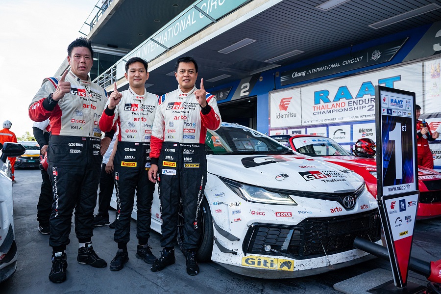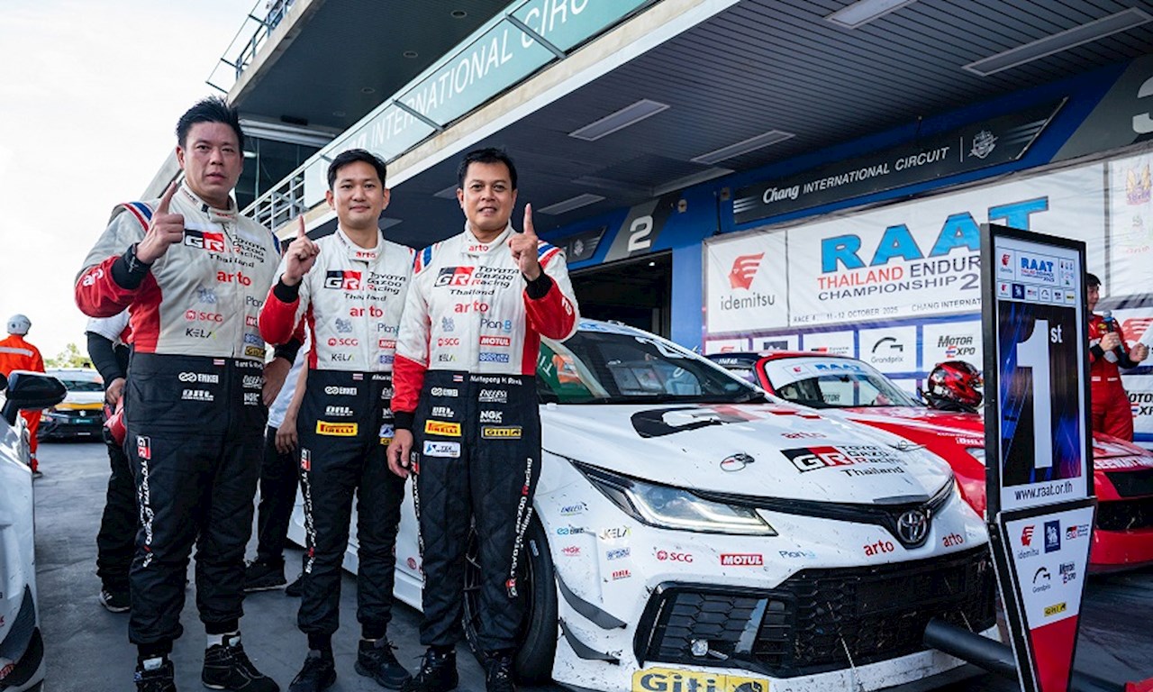 “TOYOTA GAZOO Racing Thailand” ทีมแข่งรถที่ยิ่งใหญ่และประสบความสำเร็จอย่างสูงของวงการมอเตอร์สปอร์ต ภายใต้การสนับสนุนของบริษัท โตโยต้า มอเตอร์ ประเทศไทย จำกัด ปิดฉากการแข่งขัน “RAAT Thailand Endurance Championship 2025” อย่างยิ่งใหญ่ หลังฝ่าด่านพิสูจน์ความแกร่งของทั้งรถและคนยาวนาน 8 ชม. จบสวยคว้าถ้วยอันดับ 1 ครองตำแหน่งแชมป์ประเทศไทยถ้วยพระราชทานฯ 4 ปีซ้อนไปแบบสมศักดิ์ศรี ในศึกสุดท้ายสนาม 4 ระหว่างวันที่ 11-12 ตุลาคม 2568 ณ สนามช้าง อินเตอร์เนชั่นแนล เซอร์กิต จ.บุรีรัมย์