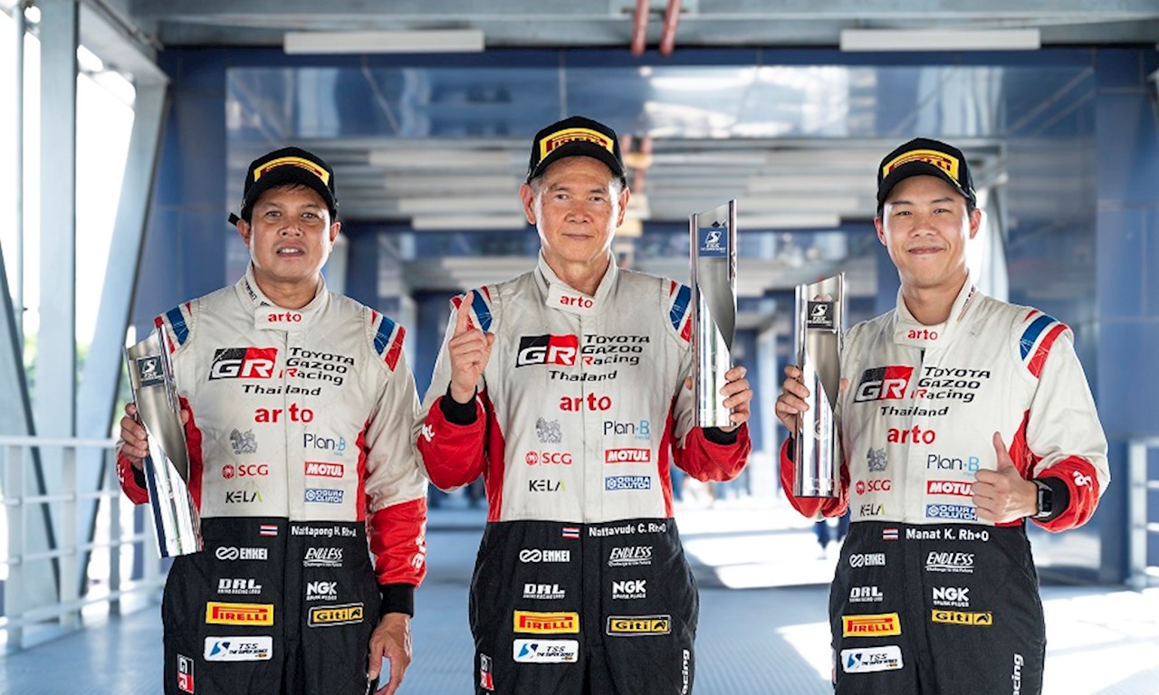 TOYOTA GAZOO Racing Thailand ทีมแข่งรถยิ่งใหญ่และประสบความสำเร็จอย่างสูงของวงการมอเตอร์สปอร์ต ภายใต้การสนับสนุนของบริษัท โตโยต้า มอเตอร์ ประเทศไทย จำกัด รุกฆาตปิดฤดูกาลความเร็ว “TSS The Super Series 2025” ผงาดชัยรับถ้วยแชมป์รุ่น GTM Am - GT4 Am- GTC นำทีมโดย สุทธิพงศ์ สมิตชาติ, ณัฐวุฒิ เจริญสุขะวัฒนะ, ณัฐพงษ์ ห่อทองคำ, มานัต กุละปาลานนท์, กรัณฑ์ ศุภพงษ์, อัครพงษ์ อัคนีนิโรธ, กฤษฎิ์ วสุรัตน์, ณ ดล วัฒนธรรม, นรรัศมิ์ อภิวาท, ทรงศักดิ์ กรศิริสืบสกุล และ ไอตั้น อัษฎาธร ในระหว่างวันที่ 31 ตุลาคม – 2 พฤศจิกายน 2568 ณ สนามช้าง อินเตอร์เนชั่นแนลเซอร์กิต จ.บุรีรัมย์