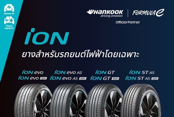 สำหรับประเทศไทย ยางรถยนต์ไฟฟ้าในกลุ่มผลิตภัณฑ์ยาง iON และยางรุ่น Ventus S1 evo3 ev ของ ฮันกุก ไทร์ ถูกออกแบบมาสำหรับรถยนต์ไฟฟ้า ไม่ว่าจะเป็นรถยนต์ปลั๊กอินไฮบริด (PHEV) หรือรถยนต์ไฟฟ้าแบตเตอรี่ (BEV) สามารถรองรับสมรรถนะเฉพาะของรถยนต์ไฟฟ้า เช่น น้ำหนักแบตเตอรี่ที่เพิ่มขึ้น แรงบิดขณะออกตัว รวมถึงเสียงรบกวนที่น้อยลง