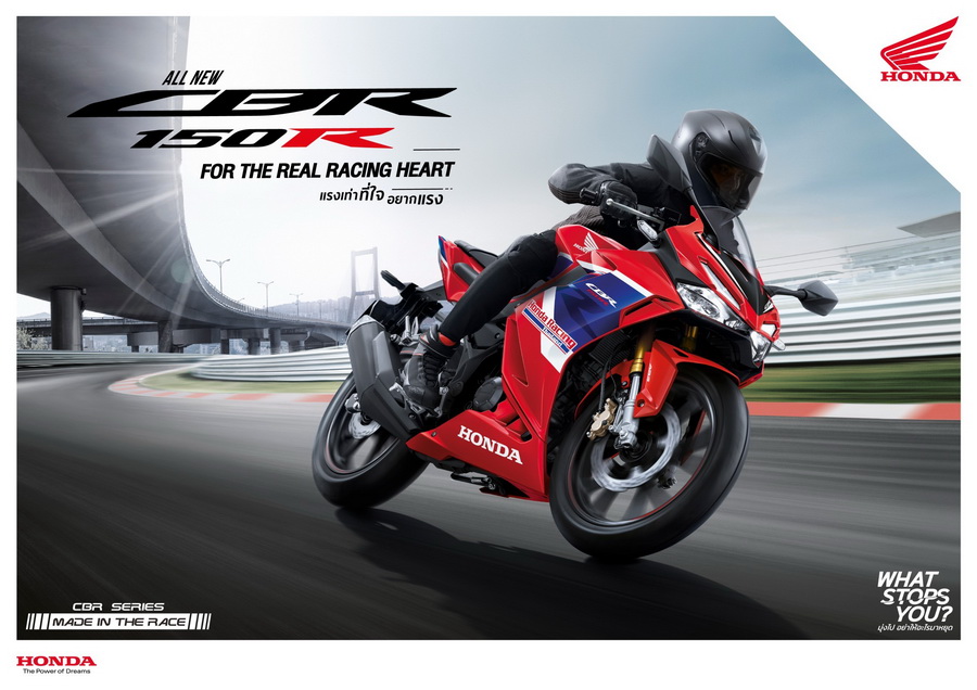 รถจักรยานยนต์ฮอนด้าเปิดตัวรถสปอร์ตรุ่นใหม่ล่าสุด “All New CBR150R” จากตระกูล CBR Series ดีไซน์ล้ำสมัยให้ความเป็นซูเปอร์สปอร์ตในทุกมิติ ติดตั้งเทคโนโลยีเพื่อยกระดับการขับขี่ด้วย Assist Slipper Clutch และโช้กหัวกลับ และเบรก ABS วางจำหน่ายแล้วตั้งแต่วันนี้เป็นต้นไป