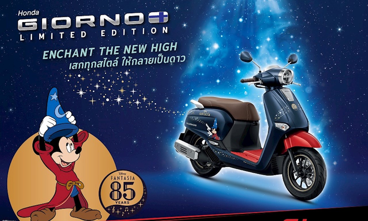 Honda Giorno+ Disney Fantasia 85 Years Limited Edition ผลิตและวางจำหน่ายเพียง 2,000 คันเท่านั้น ในราคาแนะนำ 73,700 บาท มาพร้อมกับพรีเมียมบอกซ์เซ็ตสำหรับแฟน Disney Fantasia ได้แก่ เสื้อแจ็คแก็ตสุดแฟชั่น ลายจอมเวทย์มิกกี้เม้าส์ รวมถึงพวงกุญแจสุดคูล The Magical Keychain เพิ่มความน่ารักเหนือจินตนาการ ไม่ซ้ำใคร เตรียมติดตามรถจักรยานยนต์รุ่นใหม่จากไทยฮอนด้าที่กำลังจะเปิดตัวตลอดปี 2025 นี้ ไทยฮอนด้ามุ่งมั่นพร้อมนำเสนอผลิตภัณฑ์และเทคโนโลยีที่ตอบสนองทุกไลฟ์สไตล์