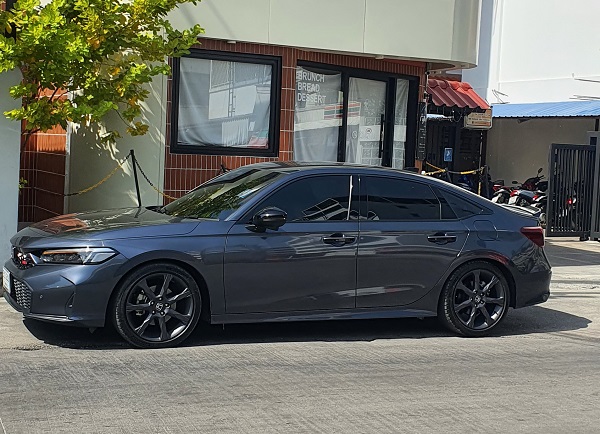 Honda Civic 2025 มีตัวถังรวมทั้งหมด 6 สีครับ ขึ้นอยู่กับรุ่นย่อย ทั้ง สีเทา Meteoroid Grey Metallic อย่างในคันที่ผมนำมาทดสอบ สีแดง Ignite Red Metallic (เฉพาะรุ่น e:HEV RS) สีน้ำเงิน Canyon River Blue Metallic (เฉพาะรุ่น e:HEV EL+ และ EL+) สีขาว Platinum White Pearl และสีดำ Crystal Black Pearl และสีเงิน Lunar Silver Metallic