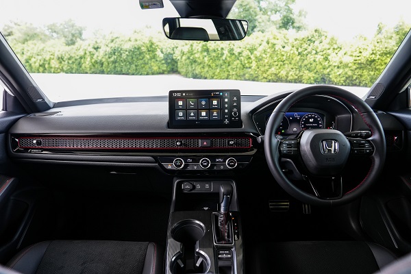 ในรุ่น e:HEV RS ที่เป็นเวอร์ชั่นสปอร์ต สำหรับภายในได้อะไรใหม่เพิ่มขึ้น คือ เบาะที่นั่งลายใหม่ Prime smooth ด้วยวัสดุเบาะหนังกลับและหนังสังเคราะห์สีดำตกแต่งด้วยด้ายสีแดง อีกทั้งตกแต่งแผงคอนโซลหน้าและแผงประตูด้านข้างสีแดงสไตล์สปอร์ต ถือว่าเพิ่มความร้อนแรงของความเป็นตัวท็อปได้ดีเลยทีเดียว